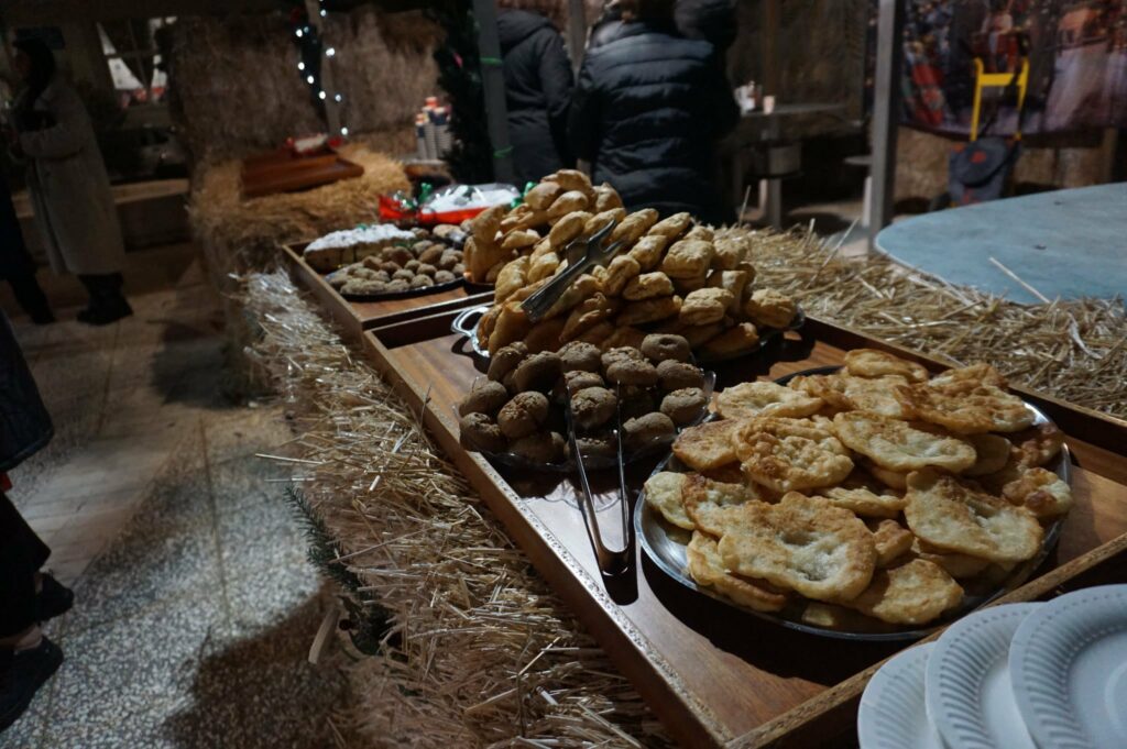 Σε όλους προσφέρθηκαν γιορτινά ποντιακά εδέσματα, ζεστή σοκολάτα, καθώς και ζεστό κρασί για τους ενήλικες.